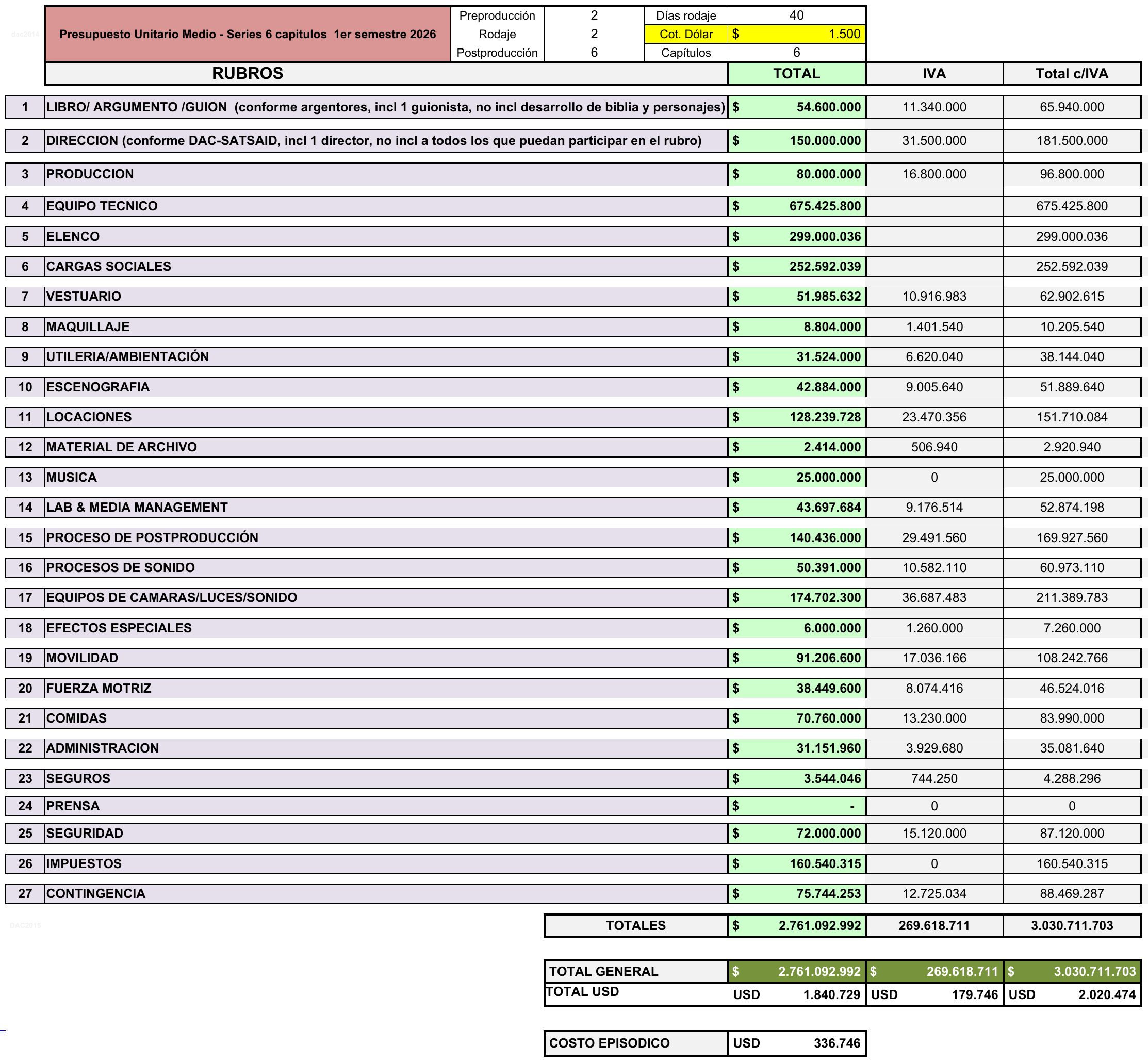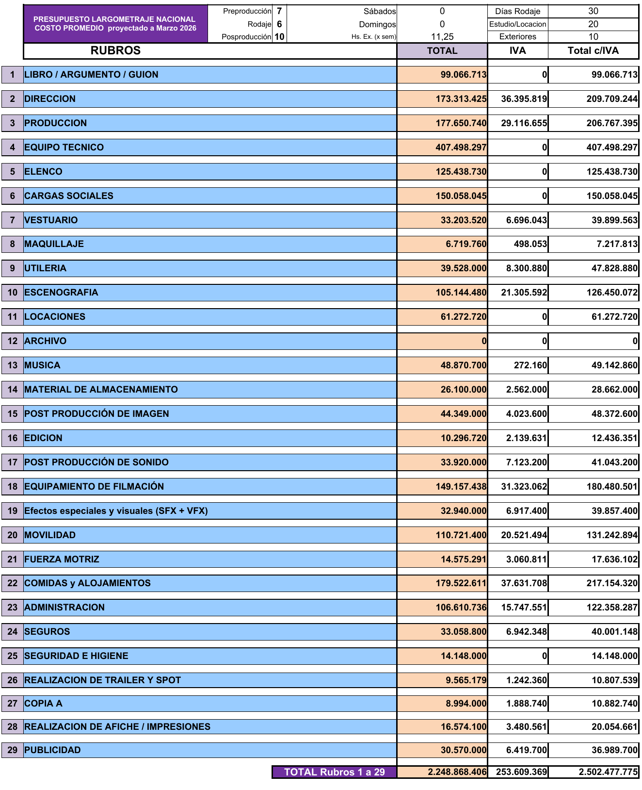 PRESUPUESTO LARGOMETRAJE NACIONAL