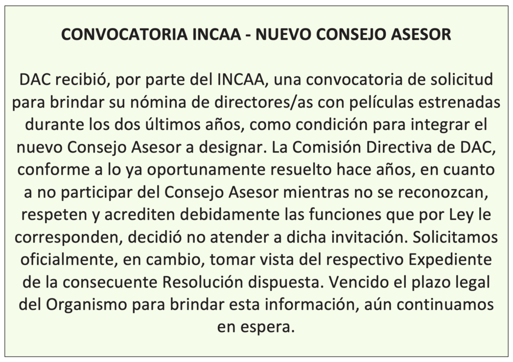 A partir de la Resolución 545/24, las películas que pretendan acceder a Subsidios por Otras Formas de Exhibición o de Medios Electrónicos, deberán presentarse al Comité de Películas Terminadas, que resolverá si la película es declarada “de interés” (simple o especial) o “sin interés”. Ha dejado de existir la preclasificación, con lo cual quien pretenda filmar una película no sabrá, luego de haberla terminado y hasta el momento de ser evaluada por el Comité de Películas Terminadas, si accederá o no a los subsidios. El productor que presente el film al Comité, previamente deberá realizar una rendición de gastos (conforme al nuevo Presupuesto de 29 Rubros, si es Ficción), que tendrá que haber solventado con independencia del INCAA, ya que tampoco existen adelantos de subsidio ni de masa salarial; como único anticipo para el cobro del Subsidio, solo se ofrecen “microcréditos”.