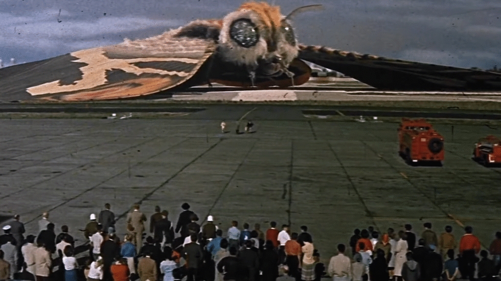En 1956, los cines japoneses proyectan por primera vez un monstruo en color. RODAN (ISHIRÔ HONDA, 1956) es un pteranodonte color marrón que emerge de las profundidades de la tierra y sobrevuela la isla de Kyushu, resistido por las Fuerzas de Autodefensa de Japón –el ejército establecido en Japón tras los cuatro años de ocupación estadounidense al fin de la Segunda Guerra Mundial–. Los desastres perpetrados por Rodan no difieren demasiado de los de los bombarderos que habían sobrevolado ciudades japonesas tan solo quince años atrás.